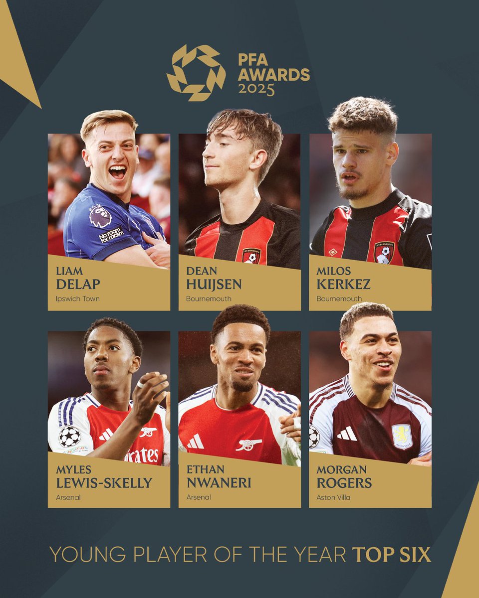 The Professional Footballers’ Association has announced the top six finalists for the 2025 Young Player of the Year award, highlighting a standout group of emerging talents who have impressed across the Premier League and beyond last season.