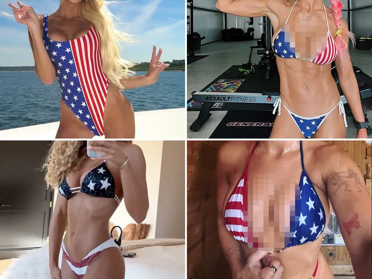 No need for lighting a match — these spirited stars in American Flag swimsuits are so dang hot they’ll ignite your fireworks! Can you guess the red, white, and blue bikini babe in each photo?